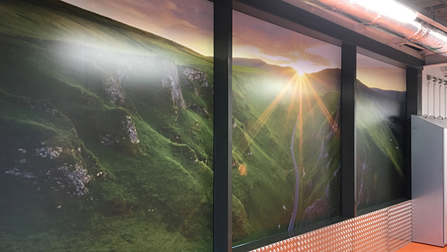 Printed graphics provide a fabulous opportunity to give offices or other premises a personalised, professional and impressive new look. The Window Film Company provides printed graphics for glazing and other surfaces, allowing for the application of graphics virtually anywhere. This project in Sheffield provides the perfect example of what can be achieved, with striking images of stunning local landscapes forming the basis of an incredible office refurbishment.