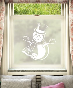 Large white happy snowman Christmas on frosted window film by The Window Film Company, add a great festive look to your windows this Christmas!