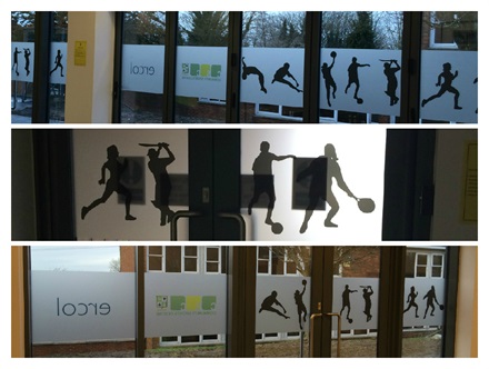 The school were able to provide a range of graphics, the majority of them silhouettes of various sporting activities, which were adapted for use by The Window Film Company’s in house graphics team. With a few minor adjustments made to the artwork, proofs and a sample panel were created and supplied to the school for approval.