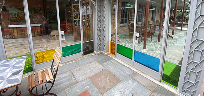 This project saw the addition of rainbow window film to panes throughout a hotel and restaurant in West Sussex, adding a splash of vibrant colour to the lower panels throughout a section of the beautiful property.