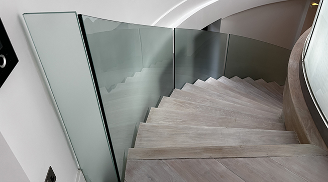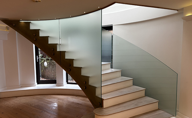 Frostbrite film can also be computer cut to deliver bespoke lettering or shapes and can also be printed onto create eye-catching displays. On this occasion however, the film was applied in its standard state, with a view to delivering an aesthetic upgrade to a stylish curved staircase.