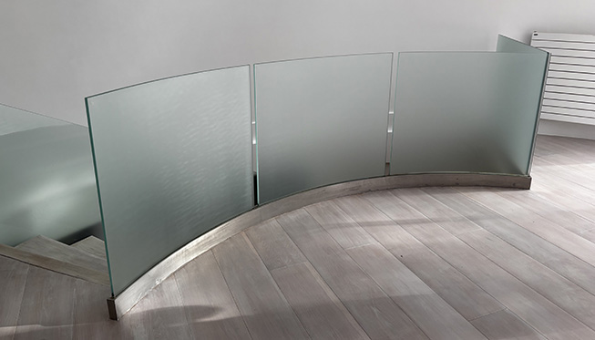 The film has been specially developed to be long lasting and tough wearing, making it suitable for high traffic areas such as glass partitions, bathrooms, or as in this case on a staircase balustrade. Once in place, it immediately gives glass the appearance of frosted or sandblasted glass, blocking the view from both sides without sacrificing high levels of natural light.