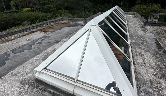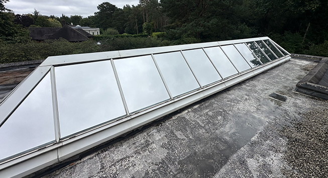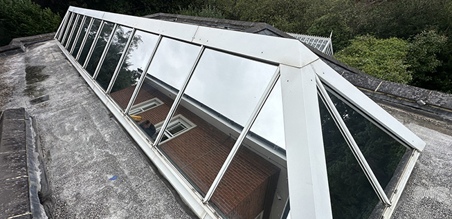 For this project, access to the internal face of the glass was impossible, so the fitting took place to the external side of the glazing – a large conservatory rooflight in South-West London.